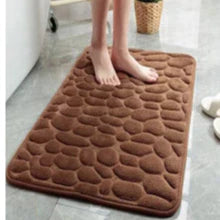 Tapete de banheiro com base antiderrapante, oferecendo segurança e conforto após o banho.